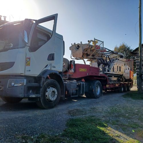 Conduite d’un ensemble tracteur semi porte engin. Transfert régulier du matériel de forage.